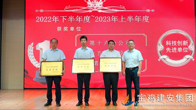 為激勵先進、樹立榜樣,會議第二項由質量部經理韓宇龍宣讀了《關于表彰2022下半年至2023上半年科技成果獎勵、科技創新先進單位、BIM推廣應用先進單位的決定》并主持頒獎。2022下半年~2023上半年度共獲得省級QC一類成果3項,省級QC二類成果5項,省級QC三類成果4項,實用新型專利17項,各類BIM獎項7項,并授予第十六分公司、第十五項目經理部、第四分公司為科技創新先進單位榮譽,授予西安分公司為BIM推廣應用先進單位榮譽。總經理胥永寧及公司相關領導為獲獎單位頒發了獎勵。